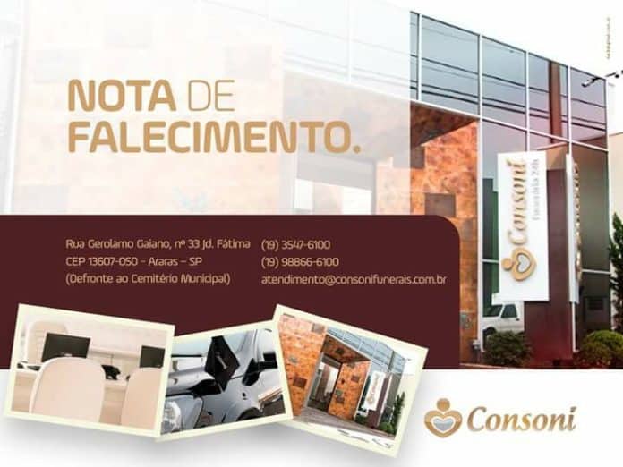 Sepultamento: 22/02/2024 às 10:00 – Cemitério Municipal de Araras.