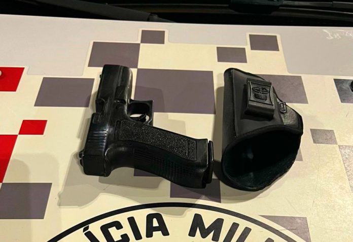 No local, os policiais constataram que uma das partes envolvidas no acidente apresentava sinais de embriaguez. Durante a abordagem, foi localizado um simulacro de arma de fogo na cintura do condutor.