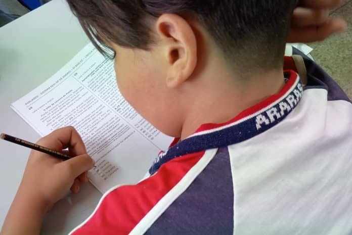 Na Emef Prof. Francisco Salles Nogueira, os alunos dos 3ºs, 4ºs e 5ºs anos fazem a avaliação que traz questões de língua portuguesa, matemática e ciências naturais.