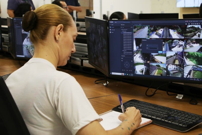 Serão três GCMs e um PM trabalhando em turnos, 24 horas por dia e sete dias por semana, fazendo o monitoramento das 938 câmeras de segurança que foram instaladas até o momento.