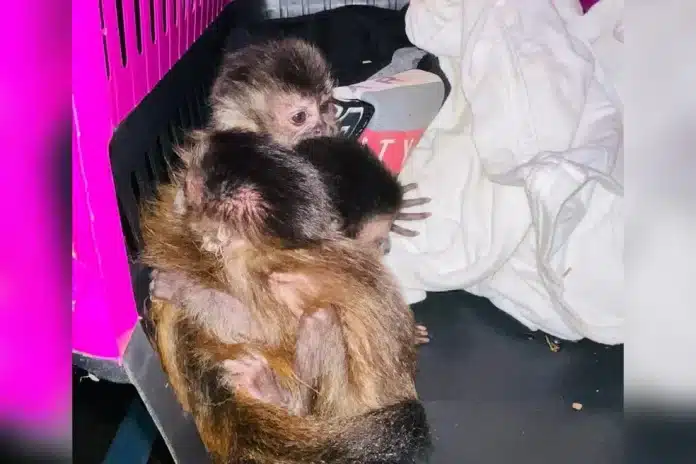 Dois homens foram presos na terça-feira (7), suspeitos de crime ambiental, ao serem flagrados com quatro macacos-prego em caixas para transporte de animais em um veículo, na altura do quilômetro 77 da Rodovia dos Bandeirantes (SP-348), em Itupeva (SP).