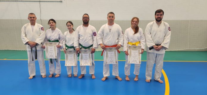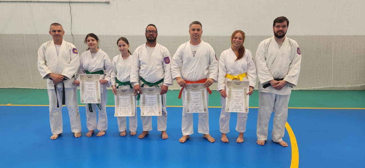 Sob a supervisão do instrutor Marcelo Stephani, alunos da unidade de Araras foram promovidos e conquistaram novas faixas, marcando mais um avanço na jornada de disciplina, autoconfiança e técnica. Receberam a faixa verde os alunos Eduarda, Sophia e Jackson; a faixa laranja, o aluno Ricardo; e a faixa amarela, a aluna Rute.