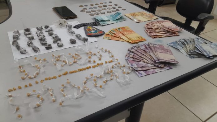 Durante a ação foram apreendidas 60 pedras de crack, 14 porções de maconha e R$ 677,55.