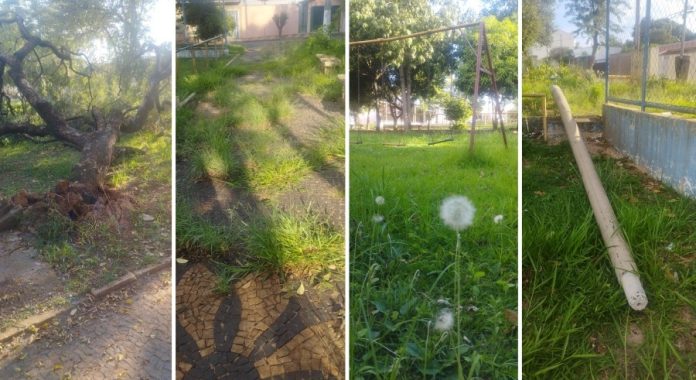 A denúncia ressalta a necessidade de manutenção urgente para que a praça possa voltar a ser um espaço de lazer e convivência para a comunidade.