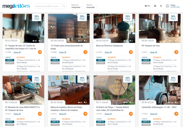 Leilões como este fazem parte da liquidação de ativos em processos de falência, oferecendo oportunidades tanto para compradores individuais quanto para empresas do setor agrícola e de bebidas. Destaques do leilão incluem o caminhão, o carrinho John Deere e os barris de pinga.