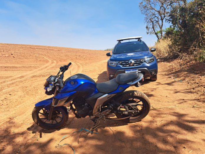 Em determinado trecho, os agentes observaram sinais suspeitos na vegetação e marcas de pneus no solo, indicando movimentação recente no local. Ao seguir mata adentro, a equipe encontrou uma motocicleta sem placa de identificação.
