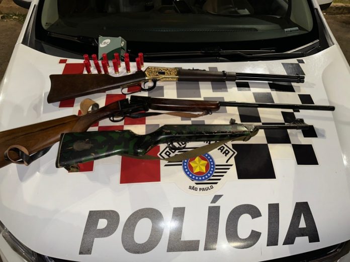 Ao ser questionado sobre as armas, o homem confirmou a posse e permitiu a entrada dos policiais em sua residência, onde apresentou três armas: uma carabina Puma calibre .38 registrada, uma cartucheira calibre .24 Beretta sem registro, e uma espingarda de pressão . Além das armas, foram encontrados 12 cartuchos calibre .24.