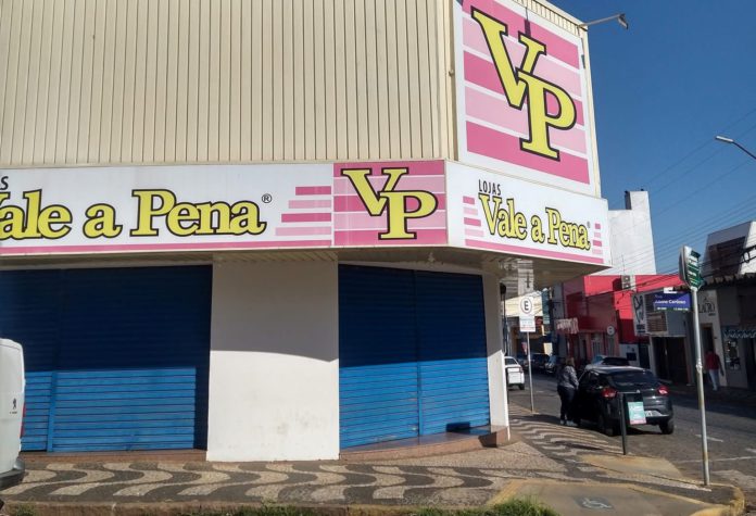 A tradicional loja “Vale a Pena (VP)”, localizada no centro de Araras (SP), amanheceu com as portas fechadas e um aviso fixado na fachada orientando os clientes sobre como realizar os pagamentos dos carnês.