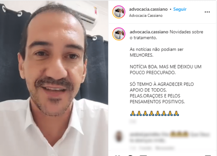 Na semana passada o advogado Willian Cassiano, consultor jurídico do site Repórter Beto Ribeiro, divulgou um novo vídeo sobre o tratamento contra o câncer. Ele foi diagnósticado com adenocarcinoma, uma forma de tumor maligno.