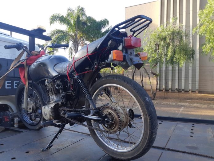 Indagado a respeito ele alegou que seria para uso e a motocicleta que não havia nenhum tipo de identificação, todos numerações suprimidas, teria comprado em Conchal (SP) pela quantia de R$1.100,00 de um indivíduo desconhecido.