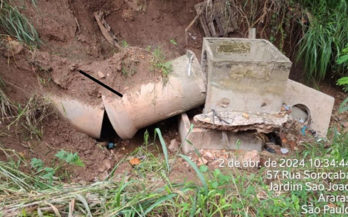 Os moradores da Rua Sorocaba, no Jardim São João, em Araras/SP, estão preocupados com o risco de desmoronamento em uma galeria de águas pluviais danificada há meses. O problema foi relatado à Defesa Civil e à Secretaria de Obras Públicas várias vezes, mas, segundo os moradores, até o momento, nenhuma solução foi tomada.