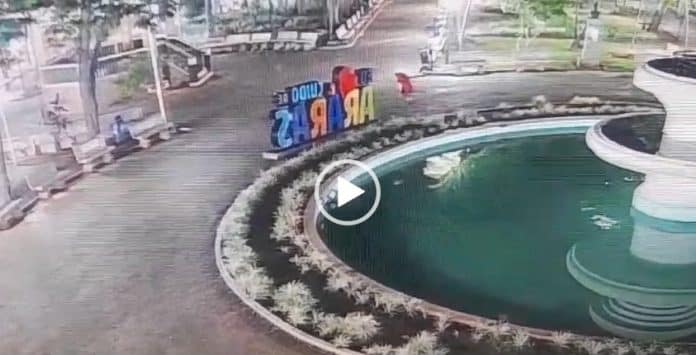 Câmeras de monitoramento da Muralha Digital flagraram o momento em que um homem furtou uma placa de bronze que ficava ao lado da Fonte Luminosa da Praça Barão de Araras (SP), na madrugada deste domingo (14).