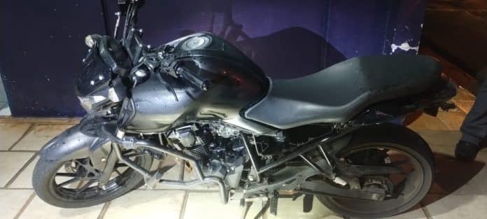 Ao realizar pesquisa pelo número de motor, já que não possuía placa e a numeração do chassi estava suprimida, constou uma motocicleta produto de ROUBO pelo município de Araras na data 19/12/23.