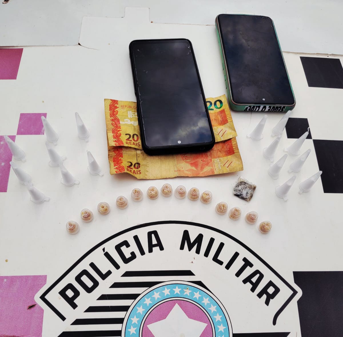 De acordo com a corporação, durante patrulhamento pelo bairro Vila Dona Rosa, a equipe avistou um veículo GM/Celta saindo de um ponto conhecido pelo tráfico de drogas.