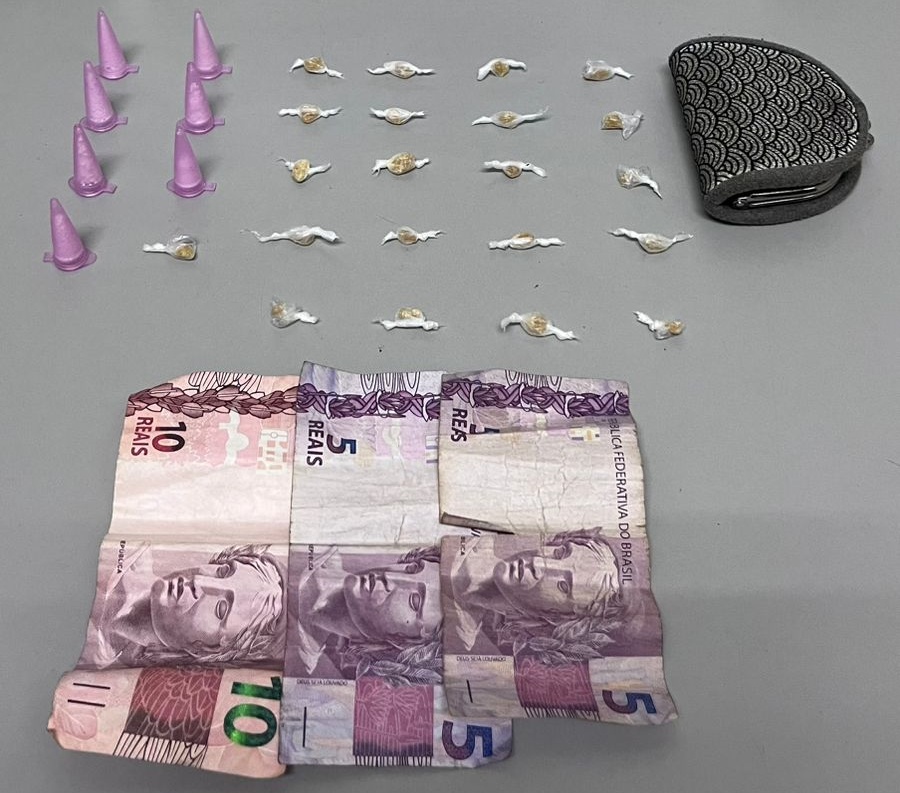 Na revista pessoal, os policiais localizaram em sua cintura um porta-moedas contendo drogas e dinheiro. Questionado, ele confessou a prática do tráfico no local.