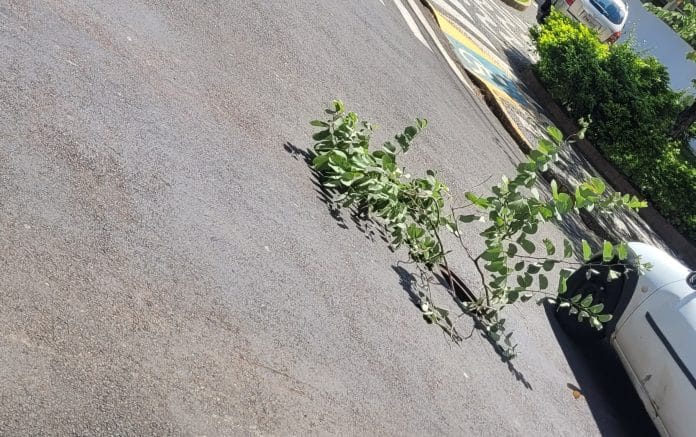 O galho da árvore foi estrategicamente posicionado para alertar os motoristas sobre o perigo iminente, evitando potenciais tragédias.