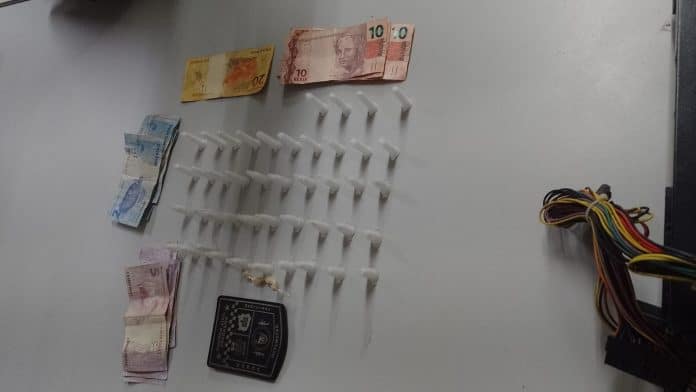 “De imediato se deslocamos até o local e avistamos L.G.D.C agachado, colocando algo em um buraco, o mesmo foi abordado, e em revista pessoal, foi localizado no bolso da sua calça a quantia de 121 reais e 2 eppendorfs de cocaína, ao verificar o local em que estava agachado, foram encontrados 2 kits contendo 44 eppendorfs de cocaína e 4 pedras de crack”, disse subinspetor Anilton que estava acompanhado dos GCMs Lindman e César.